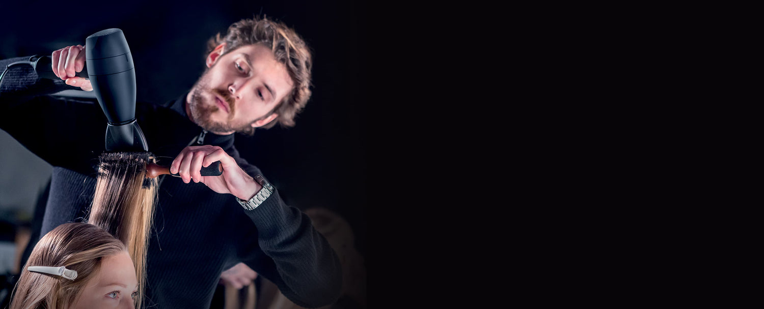 The Academy Pro hairdryers are a great choice when size and weight matter. While hair artists will appreciate the comfort and relief for the joints, the compact size is perfect also for styling on the go. The handy hairdryers are powerful and quiet. The Academy Pro 2000 Light professional hairdryer with its small PM-Pro motor delivers reliable performance with a very low weight. With only 0.90 lb. without cord, this model is the absolute lightweight in the line. The small, powerful tool is ideally compact and ergonomically balanced.