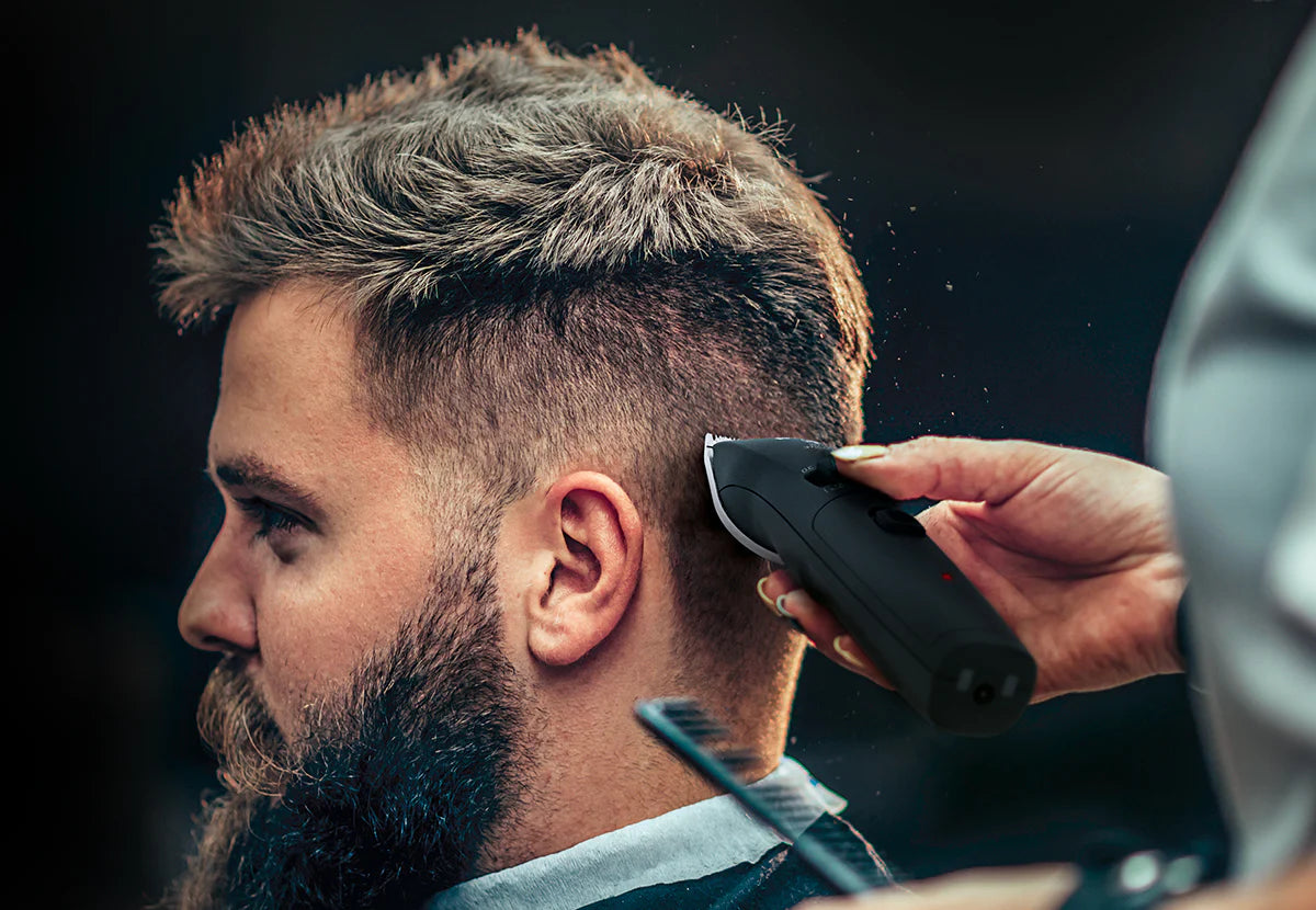The design of the clipper has been developed in cooperation with barber professionals for optimal grip and handling. Its ergonomic angle ensures a safe cut and facilitates creativity.