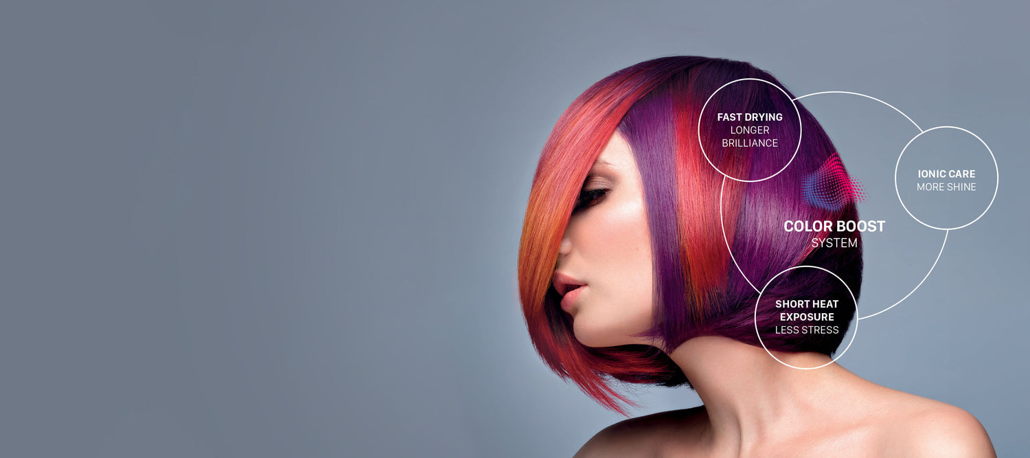 A great tool for color specialists: With ColorPro, Valera has designed a hairdryer line that truly elevates the color of freshly dyed hair. The high drying speed enables much shorter heat exposure and protects the qualities and natural shine of the hair, particularly if dyed. The COLOR BOOST SYSTEM is the perfect combination of fast drying, optimum temperature and strong air flow. In addition, an extremely powerful ion generator emits millions of negative ions into the airflow preventing the hair from drying out and getting static build-up. The result: shiny and radiant dyed hair. The model Next Pro is ideal for those who prefer a medium size hairdryer. An ideal balance and an ergonomic handle ensure maximum comfort and styling pleasure.