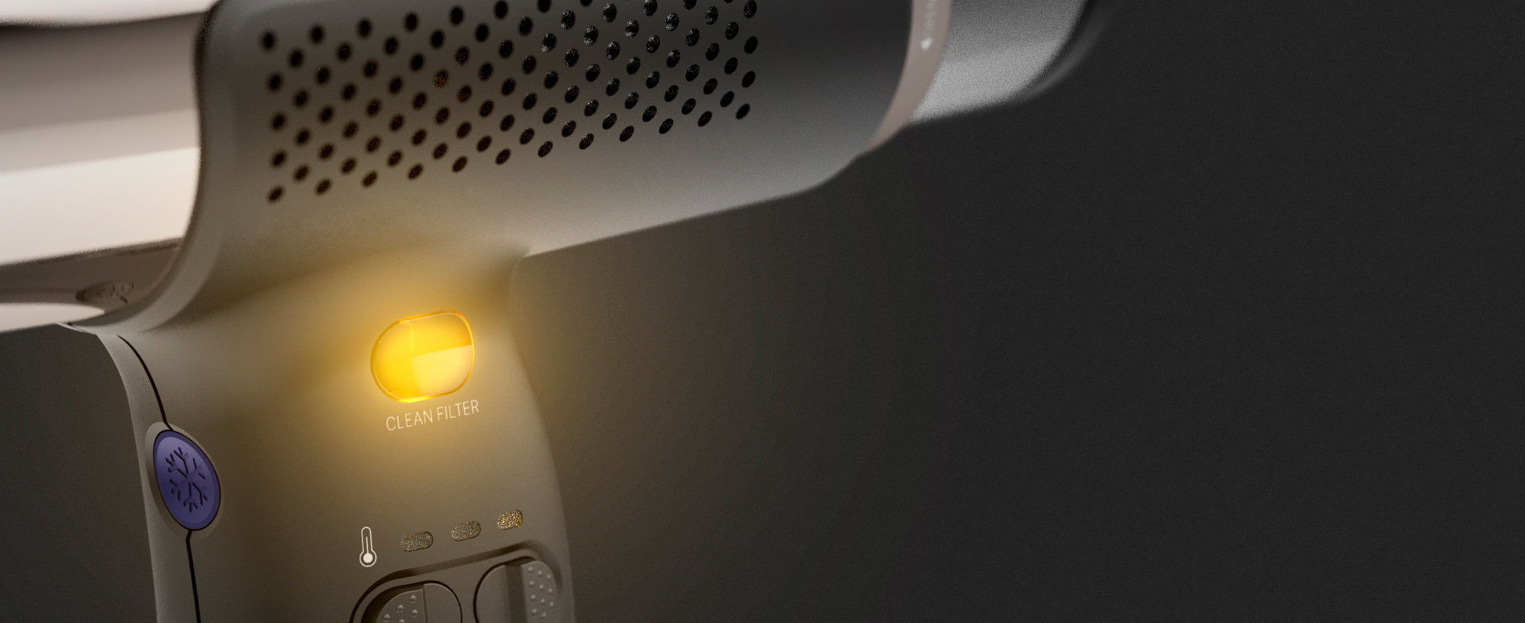• CLEAN FILTER alert for self-cleaning function of the filter